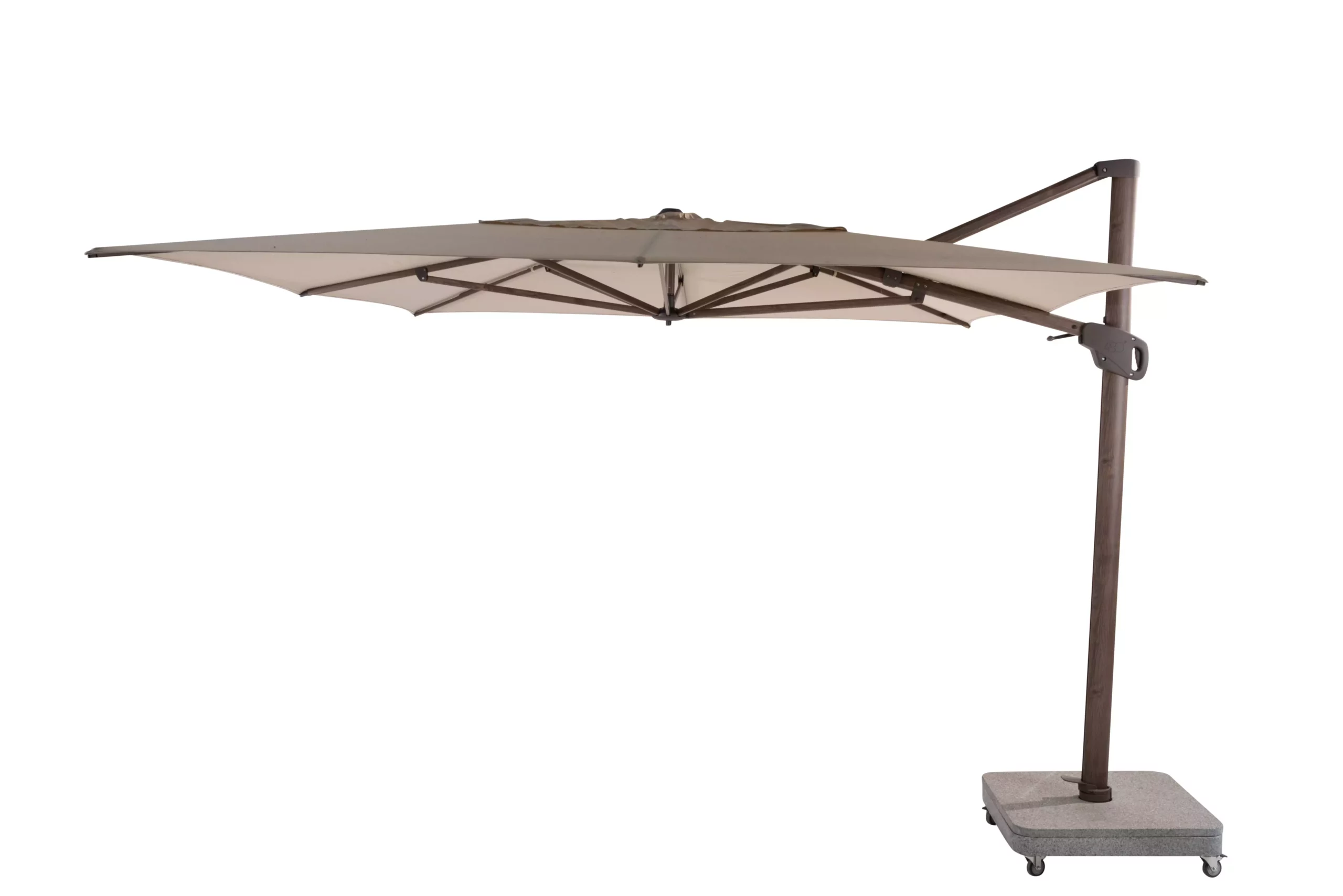 De Hacienda zweefparasol 300 × 400 cm met wengé frame is een stijlvolle, extra grote parasol die ontworpen is om royale schaduw te bieden boven loungesets, dining sets en ruime terrassen. Dankzij het rechthoekige doek van 3 × 4 meter creëert deze parasol een brede, gelijkmatige schaduwzone — ideaal voor lange tuintafels of grote zithoeken.