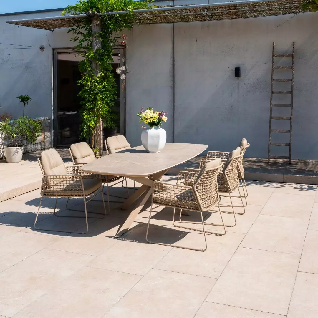 Het verfijnde ontwerp zorgt voor een zachte, uitnodigende uitstraling, terwijl de ruime lengte ideaal is voor lange zomeravonden met familie en vrienden.